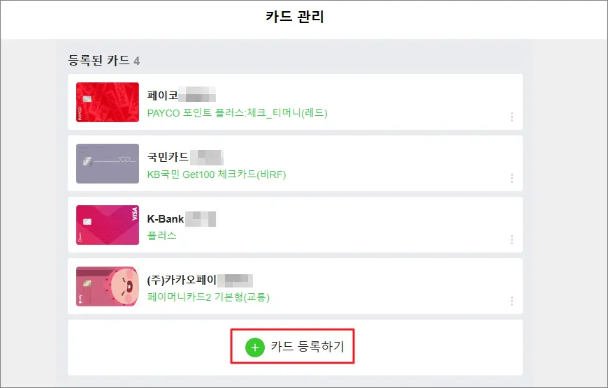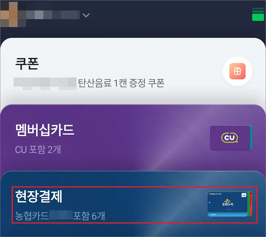 ⑥ 카드 관리에서 문화누리카드 등록 확인