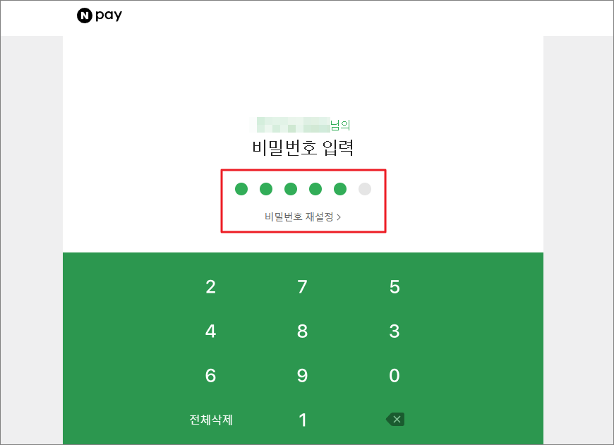 문화누리카드 네이버페이 등록 비밀번호 입력