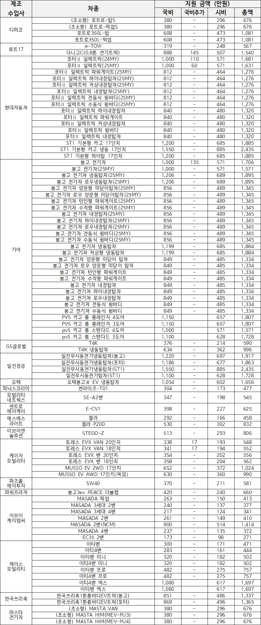 ① 공고일 이후 환경부 보조금 지원대상으로 선정된 차량 및 금액 변동 사항은 추가 공고 없이 무공해차 통합누리집에 게재