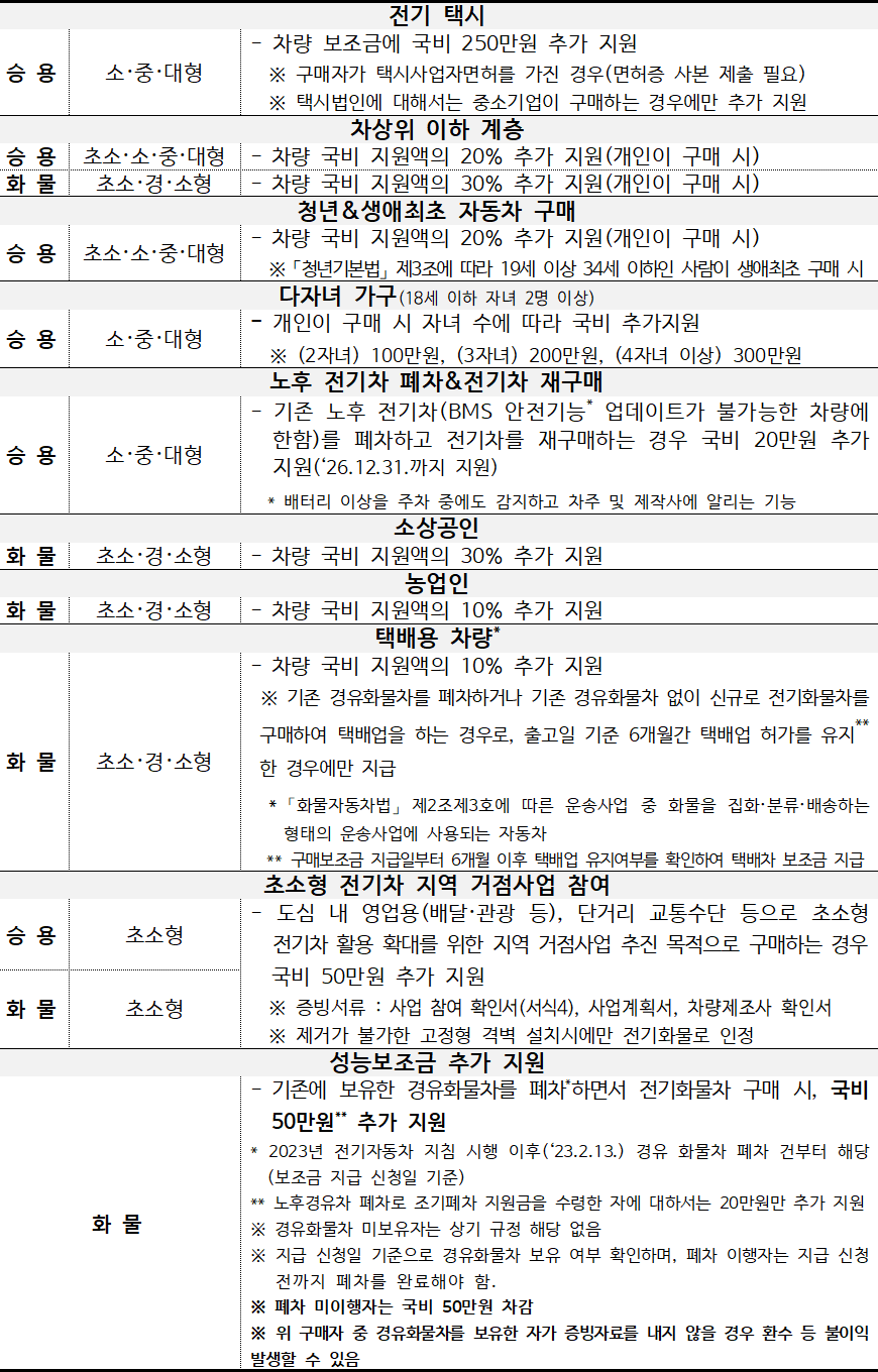 ※ 2023년 전기차보조금 업무처리지침 시행 이후 폐차건부터 해당