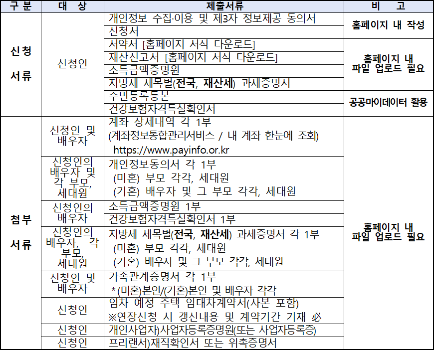– 대출실행 이후 신청자 및 배우자 모두 임차물건지에 주민등록상 주소지를 두어야 함 ※ 신청시 : 공공마이데이터활용으로 대체