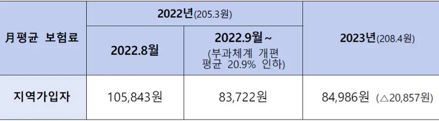 2. 이번 건강보험료율 조정으로 직장가입자 보험료율은 2022년도 6.99%에서 2023년도 7.09%로 0.1%p 인상된다. 지역가입자의 보험료 부과점수당 금액은 205.3원에서 208.4원으로 인상된다.
